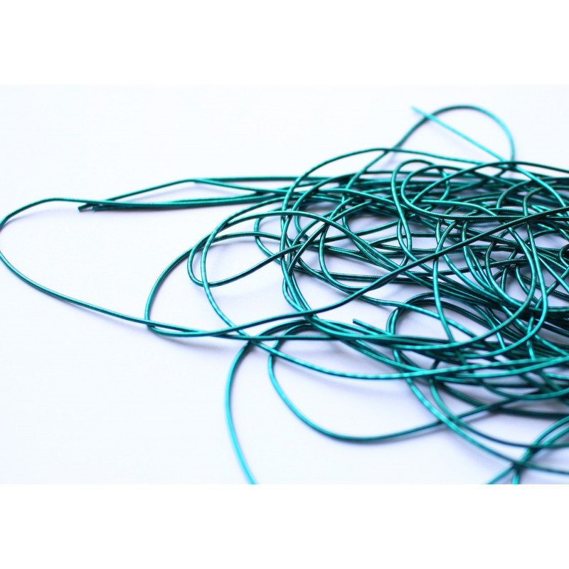 Smooth emerald cannetille - embroidery, also known as Bullions and Frieze (French term) are made of a very fine wire thread that is wound into a soft flexible hollow tube. The tube is cut up into chips (beads) and couched down onto the fabric – passing the needle and thread through the center of the chip so the thread is unseen and can be sewn over felt or crochet cotton padding to give the area dimension.