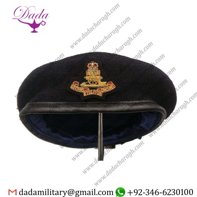 Blue Beret & Embroidered Badge Army Military Silk Lined, Royal Artillery Officers