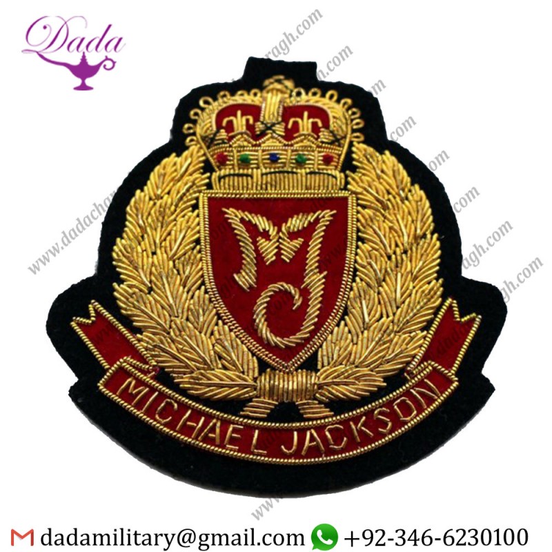 Embroidered Crest Badges Customized Hand Embroidery Bullion Wire Badges also known as