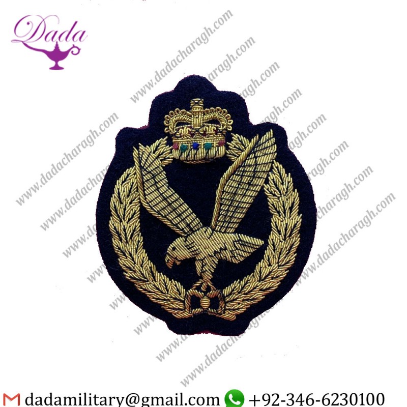 Goldwork Bullion Badge Air Corps Wire Embroidered Bullion Blazer Badge - British Army Military