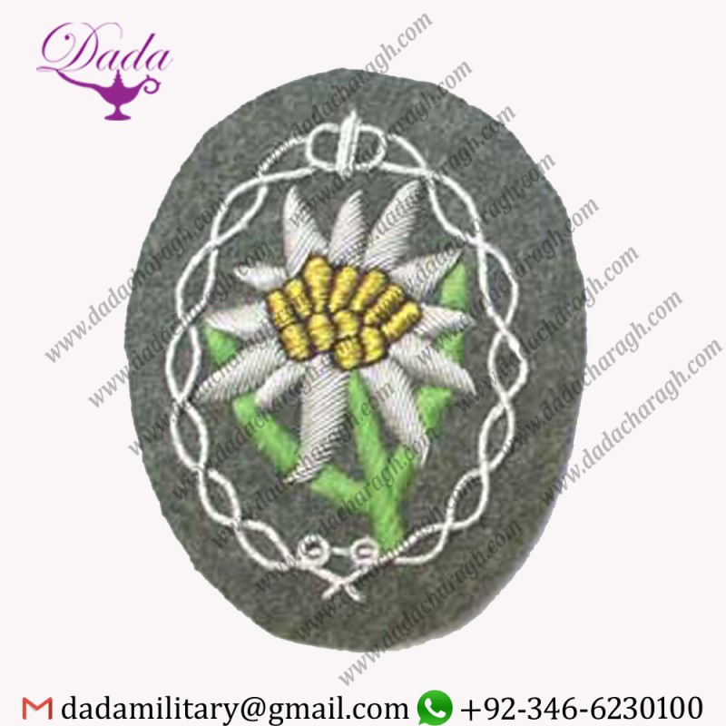 GEBIRGSJAGER EDELWEISS OFFICERS SLEEVE PATCH are Suitable for clothes, bags, hats, school uniforms, sports wears, jeans, jackets.....