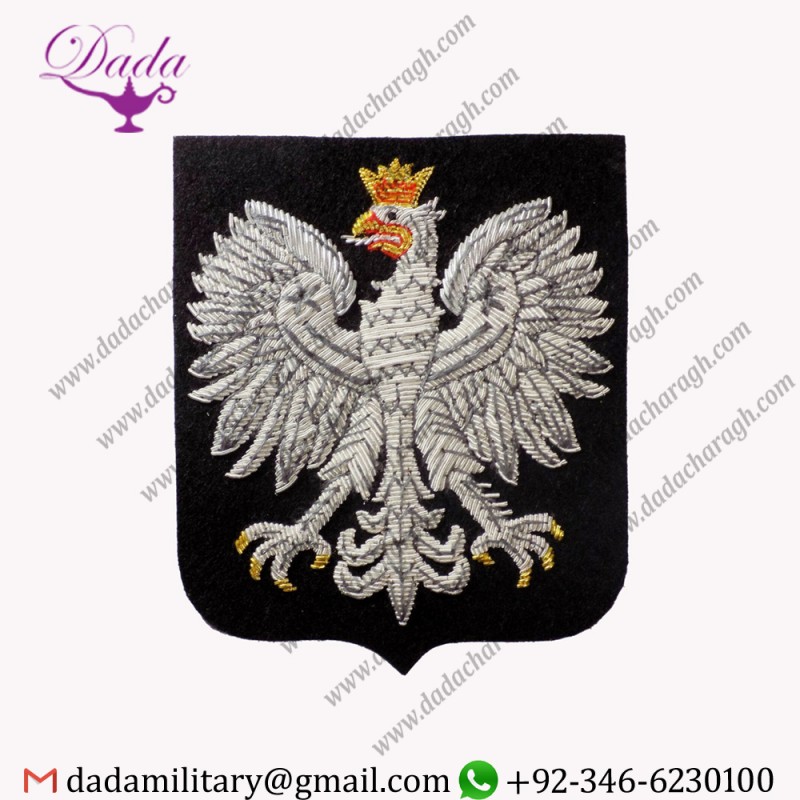 Blazer Badge Cap Badge Polish Poland Coat of Arms Officer Uniform Bullion Embroidery Polish Poland Coat of Arms Bullion Wire Badges, Polish Poland Coat of Arms Bullion Badges, Polish Poland Coat of Arms Hand Embroidery Badges, Polish Poland Coat of Arms Hand Embroidered Badges, Polish Poland Coat of Arms Bullion