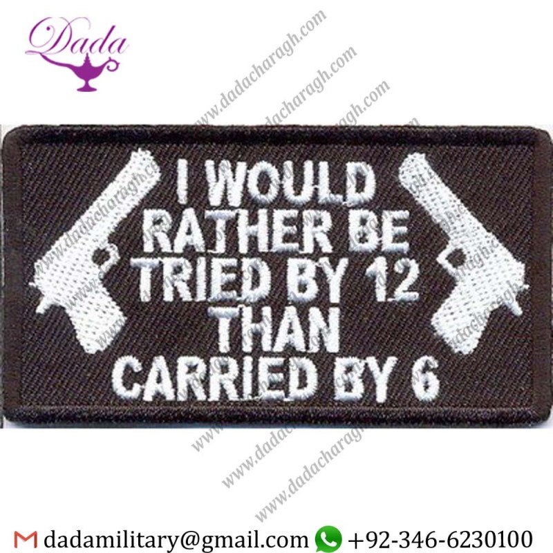 fabric badges, cloth badges, embroidered patches, sleeve patches, uniform patches, iron-on patch, Embroidery patches, Embroidered patches, Custom Embroidered Patches, Custom Embroidered & Iron On Patches, Embroidered Badges manufacturers, suppliers & exporters, Embroidery Patches Iron on, Embroidery patches machine, Embroidery patches, custom, Embroidery Patches for jackets, Patches Cloth Formation Patches, TRIED BY 12 CARRIED BY 6 GUN CONTROL FUNNY NRA SEW ON - IRON ON BIKER VEST PATCH Manufactures, Badges & Patches, Tropical Shoulder Title Badge, Shoulder Strap Badge, Shoulder Sleeve Insignia, Embroidered Patch, Unique Formation Patch, Military Uniforms Shoulder Title Patch., Army Combat Uniform Shoulder Title Patch, Army Service Uniform Shoulder Title Patch Cloth Formation Sign Patch Badge, Army Shoulder Patches, Royal Navy Shoulder Flash Patch, Shoulder Title Flash Machine Embroidered British Army Badge, British Army Commando Badge, TRIED BY 12 CARRIED BY 6 GUN CONTROL FUNNY NRA SEW ON - IRON ON BIKER VEST PATCH Suppliers.
