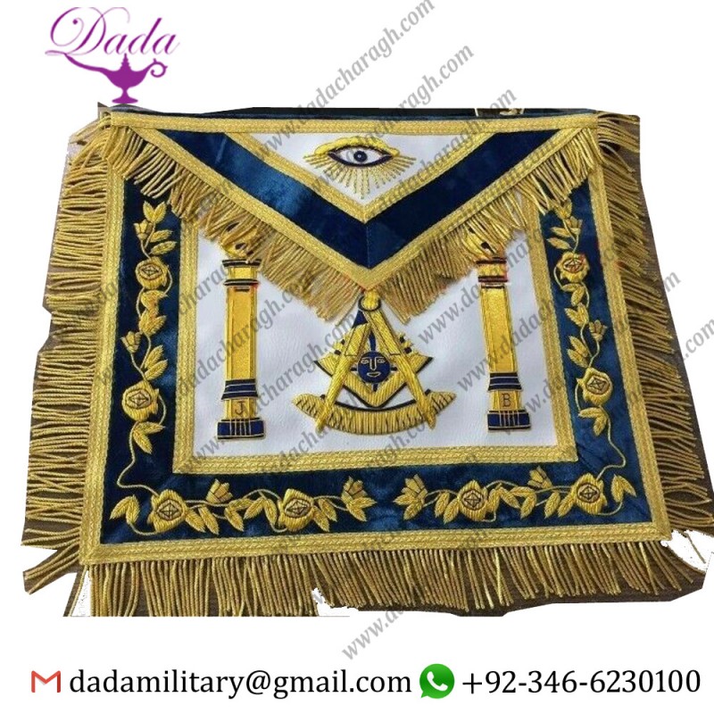 Hand Bullion Past Master Embroidery Aprons, Past Master Aprons, Masonic Aprons