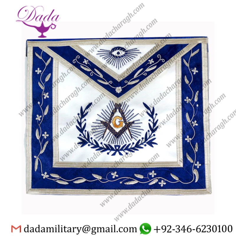Wreathed Past Master Embroidered Border Masonic Apron - Blue & White New...
