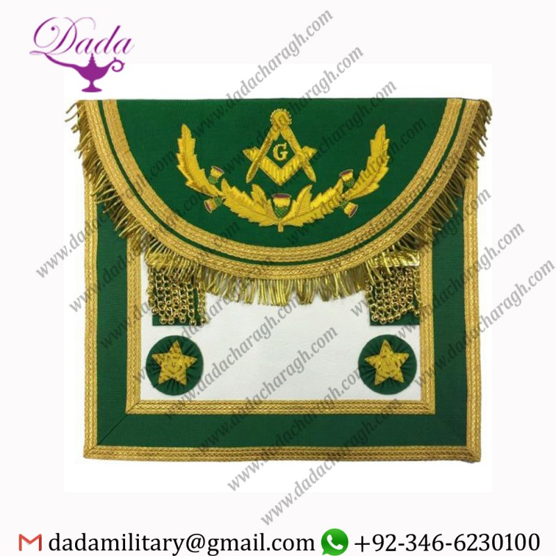 Scottish Rite Master Mason Handmade Embroidery Apron – Green with Vine work