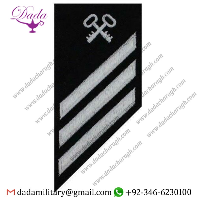 GENUINE U.S. NAVY CPO HASH MARKS SEAWORTHY GOLD EMBROIDERED ON BLUE - SET OF...