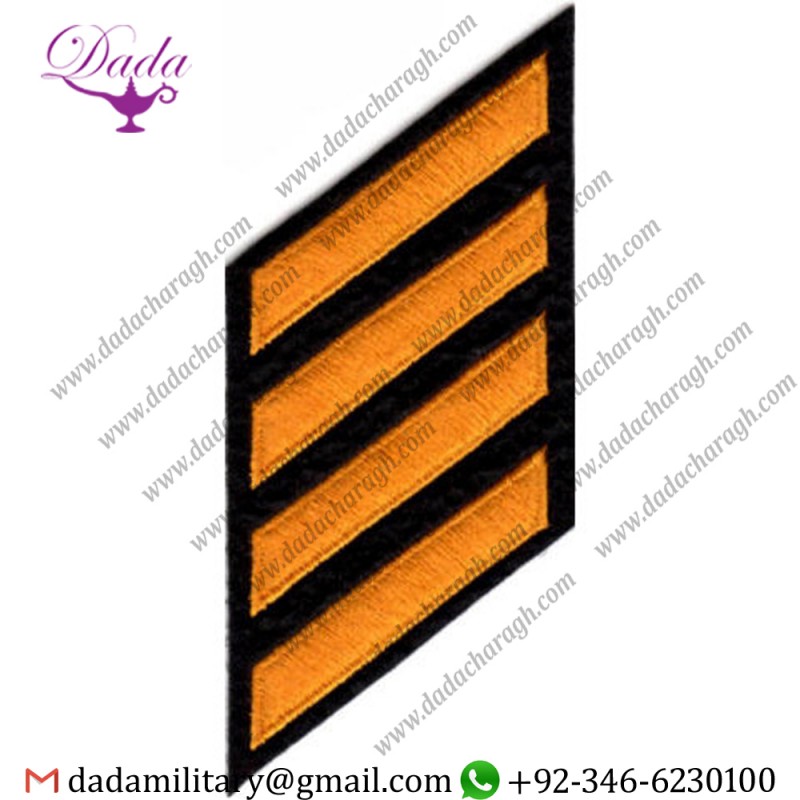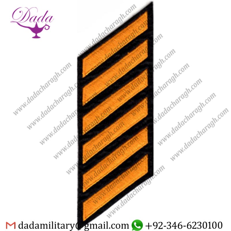 Uniform Service Hash Marks - Royal-Medium Gold on Black Felt Backing Military...