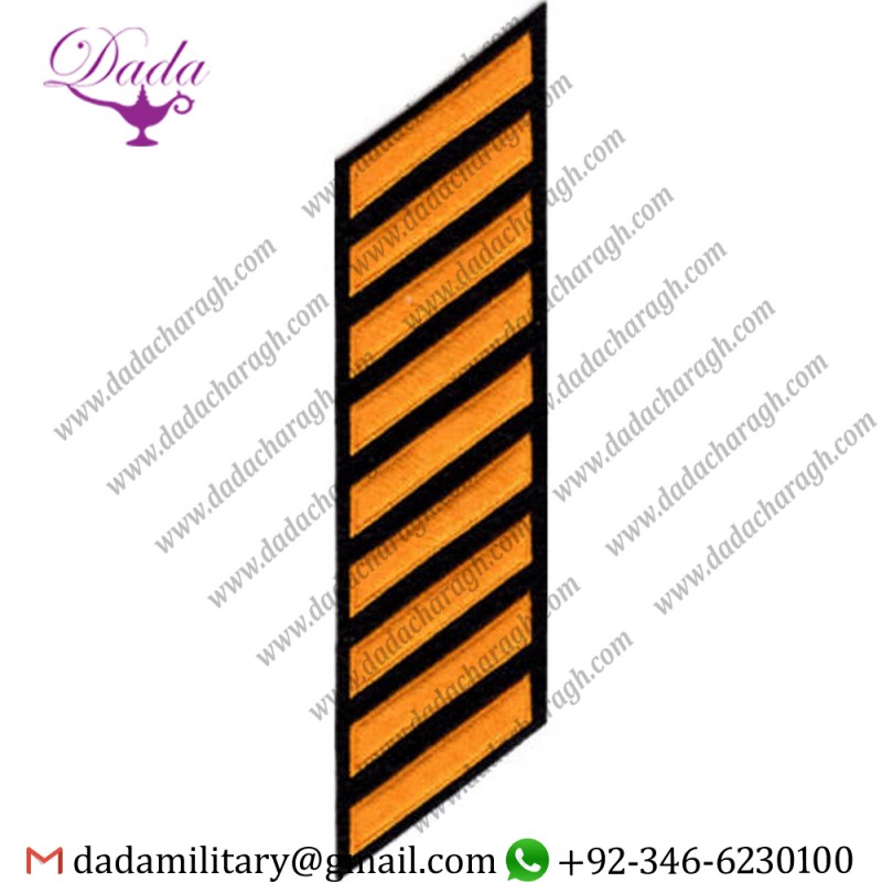 Uniform Service Hash Marks - Medium Gold on Brown Felt Backing Pakistan...