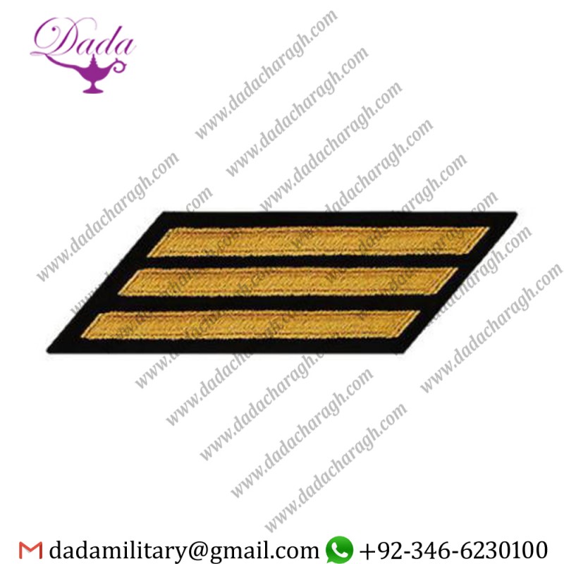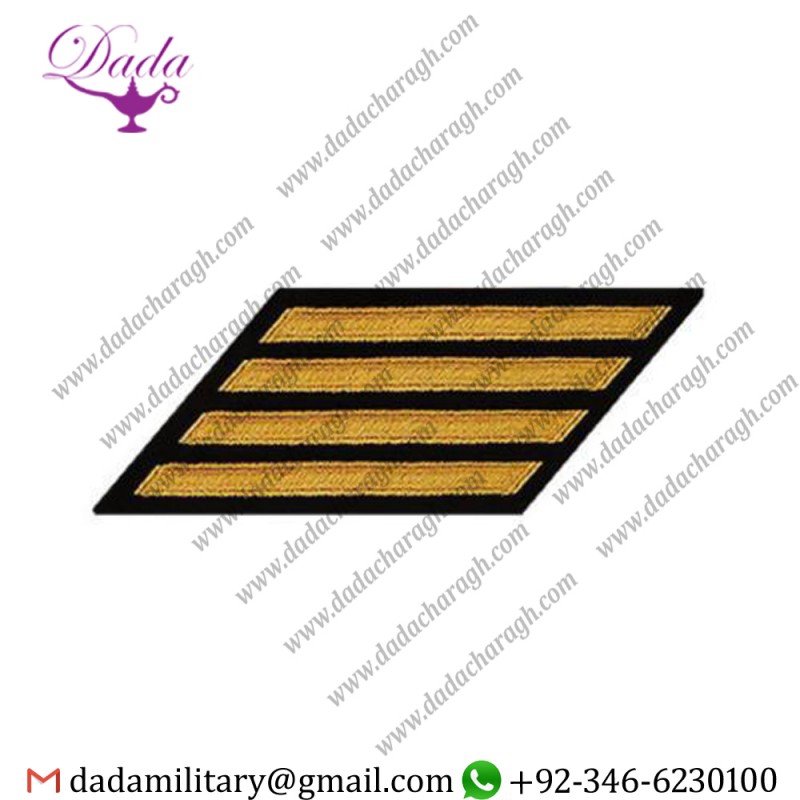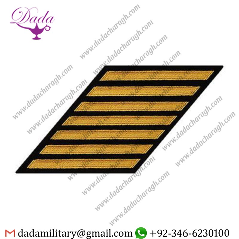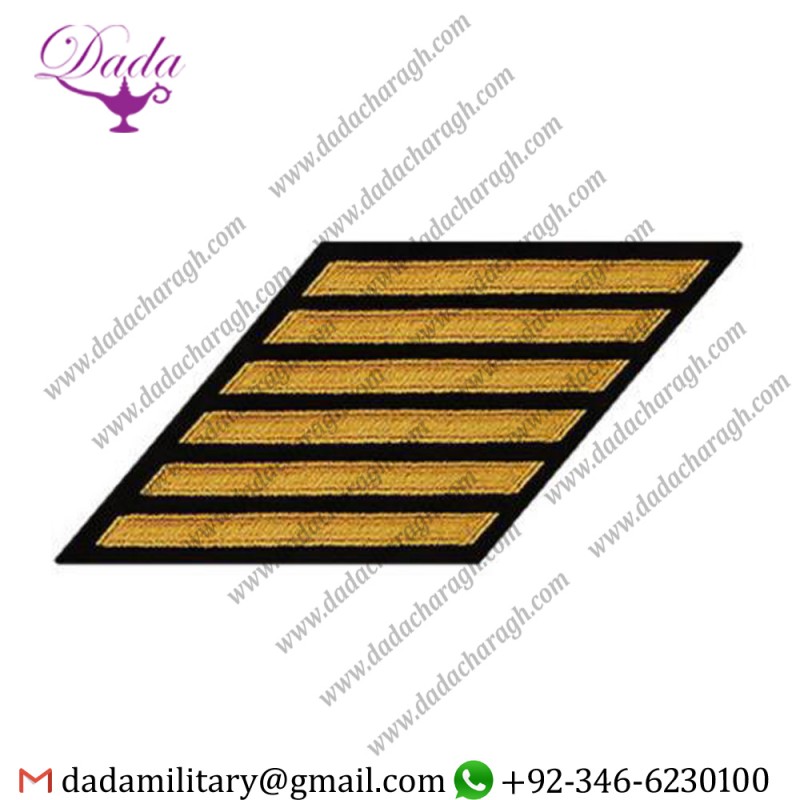 Uniform Service Hash Marks - Royal-Medium Gold on Black Felt Backing Military...