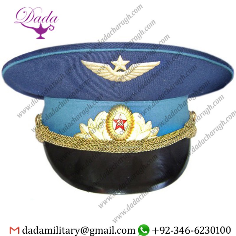 Soviet Russian Air Force General Blue Visor Cap Custom Hand Goldwork...